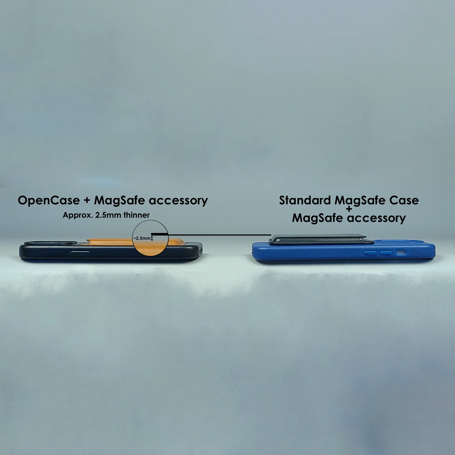 OpenCase™ is a patented iPhone case that significantly reduces MagSafe accessories sliding or shearing off by creating an "open" space to hold them in place. It not only holds accessories more securely, but it's also thinner and lighter than most cases on the market.